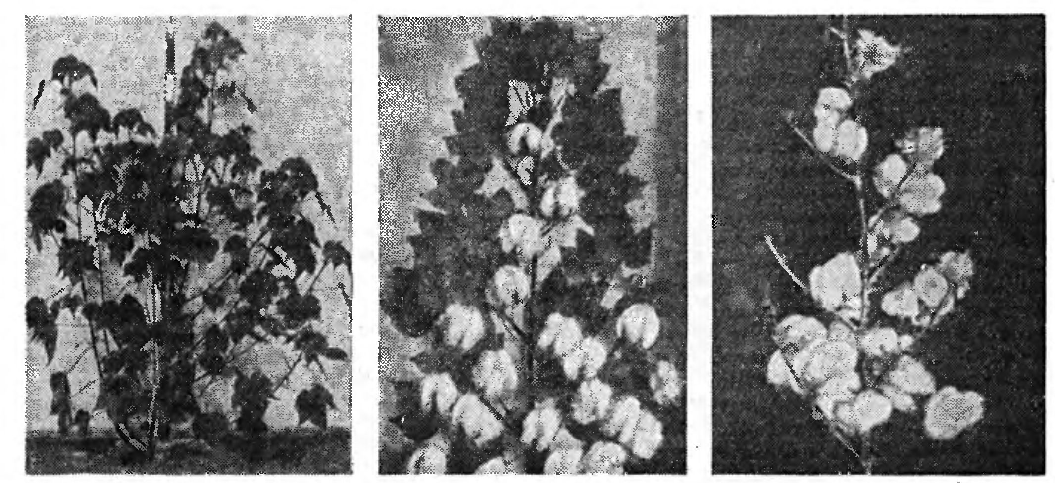 Новые сорта хлопчатника Ташнент-1 и Ташкент-2. полученные от скрещивания дикого мексиканского хлопчатника (левый снимок) с культурными сортами.