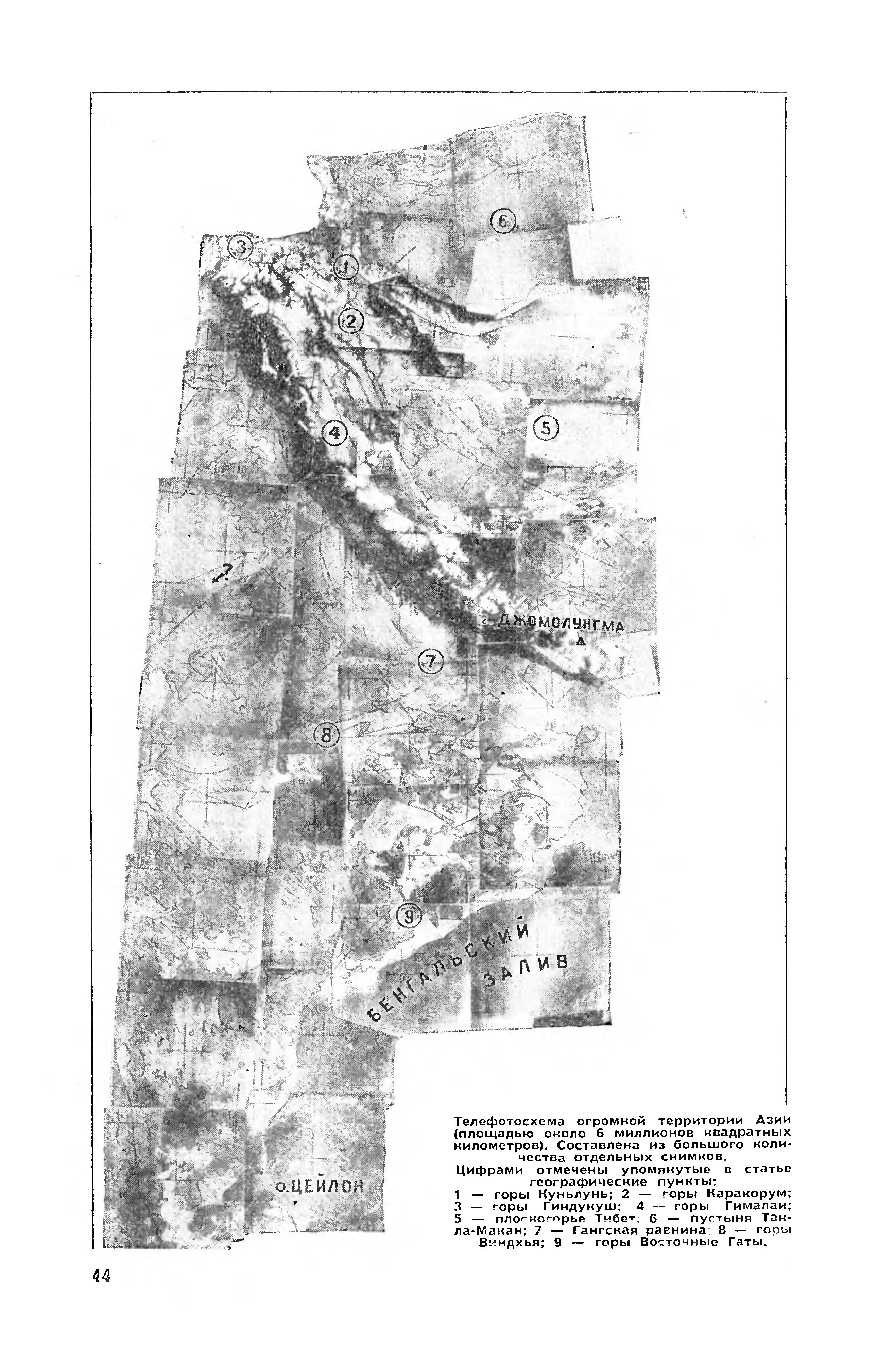 Все хребты, плоскогорья, равнины легко распознаются на телефотосхеме (Тянь-Шань, и Памир на приведенной телефотосхеме не показаны, а плоскогорье Тибет почти наполовину закрыто облаками).