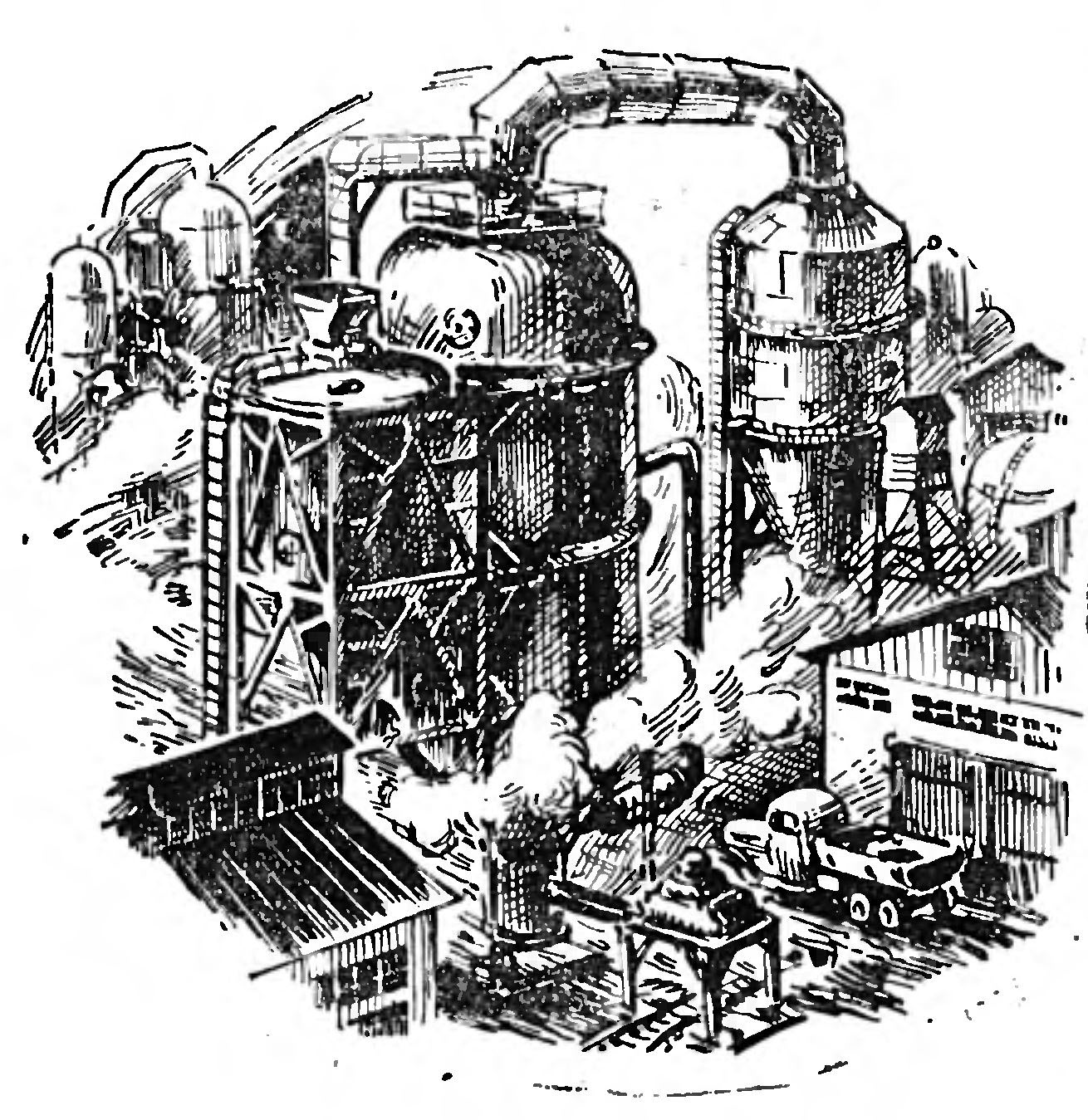 Рост химической промышленности, повышение мощности металлургических предприятий требовали громадное количество генераторных газов, исчисляемых сотнями тысяч кубических метров в час. Для удовлетворения этой потребности пришлось бы строить станции, имеющие в своем составе 50-60 и более газогенераторов. Такие сооружения были бы слишком громоздкими и дорогими. Кроме того, они могли быть рассчитаны лишь на применение таких ценных видов топлива, как кокс, антрацит, кусковой каменный уголь.
