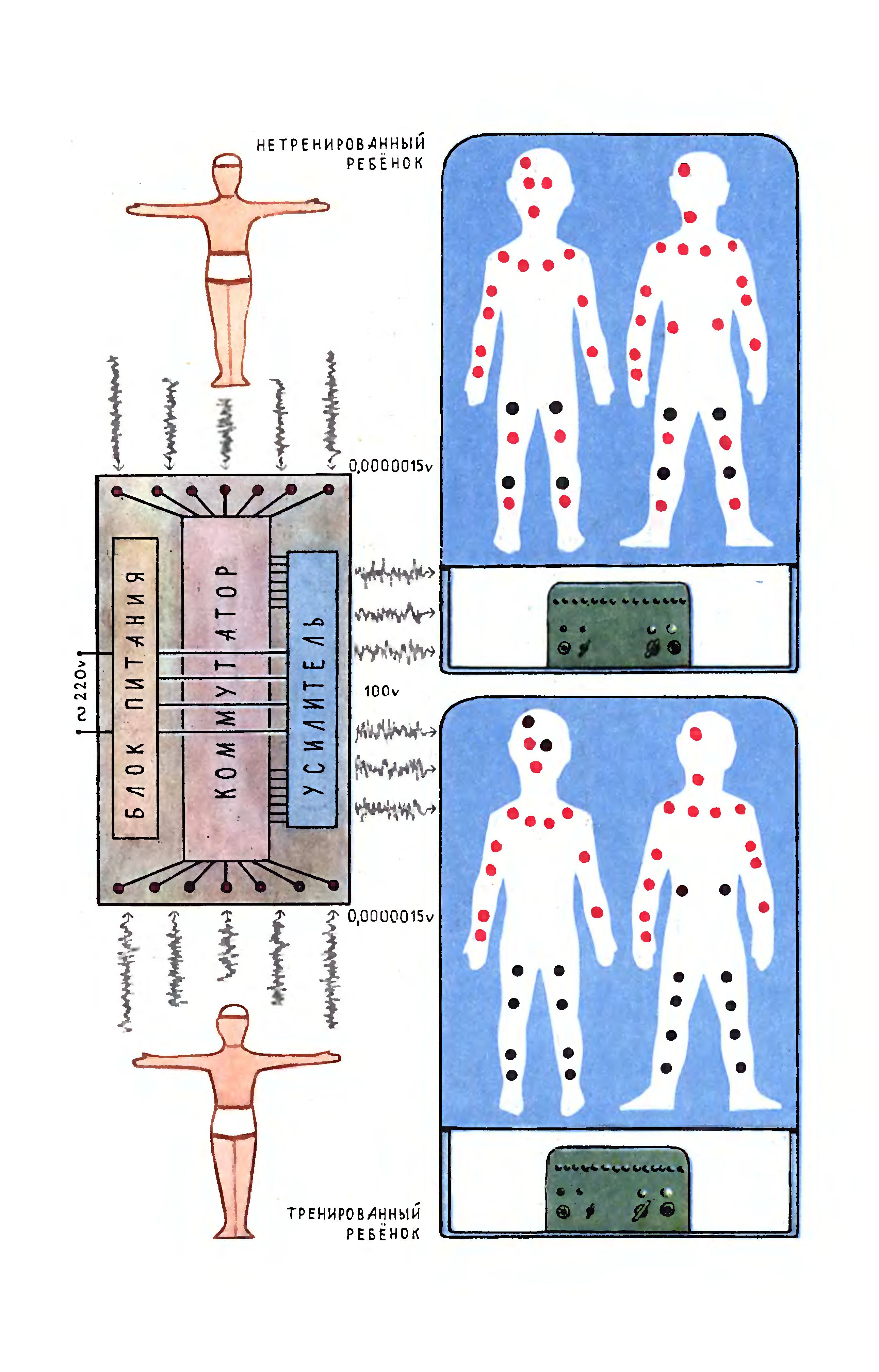 Существует много методов исследования двигательного аппарата человека. Один из этих методов - электромиоскопия. Разработан он в Институте педиатрии Академии медицинских наук СССР. (Авторы прибора - электромиоскопа - А. Фонарев, Л. Молчанов, В. Зубов.)