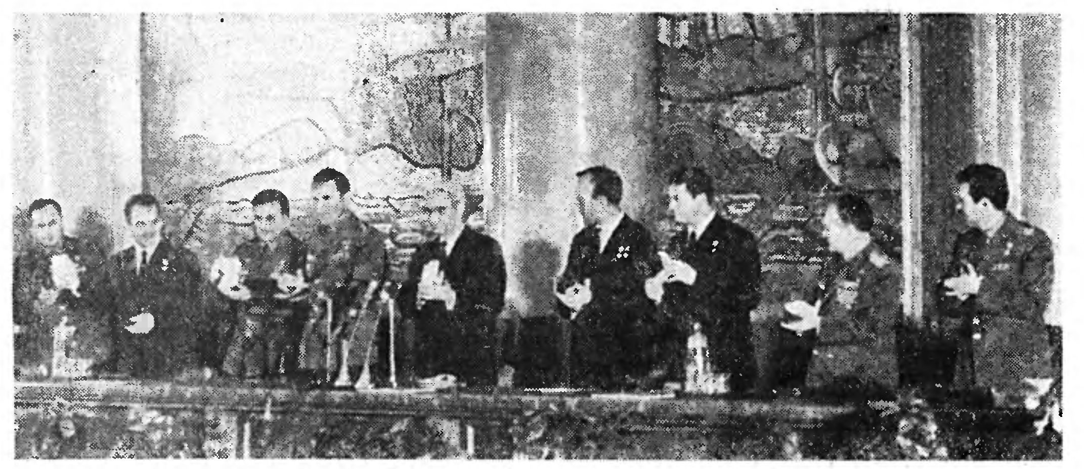 - На 64 - 65-м витке провести эксперимент по фотографированию геолого-географических образований. Время начала - 10 часов 57 минут. Количество кадров - 30. Частота съемки - 6 секунд. (Естественно, на каждый корабль посылается своя радиограмма, указывается разное время работы.) В связи с тем, что этот эксперимент выполнялся каждым кораблем один раз, я расскажу о действии экипажа «Союза-7», так, как он, кроме фотографирования, провел еще, и спектрометрические исследования.
