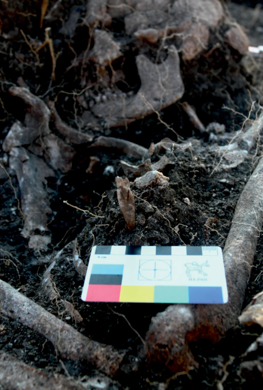 Одному из них положили в могилу 39 бараньих астрагалов – таранные кости, которые, вероятно, использовались для гадания или игры. Среди останков этого человека нашли шесть наконечников стрел, которые, судя по их положению, когда-то застряли в мягких тканях. Один наконечник лежал в районе стыка шеи и спины, чуть выше лопаток, другой – в районе затылочной кости, третий – в подбрюшье, четвёртый – в районе груди. Пятый и шестой нашли под скелетом, на дне могильной ямы. На втулках четырёх наконечников есть следы обугливания, похожие следы заметили и на левой тазовой, и на левой лопаточной костях. Это может объяснять, почему наконечники не стали вытаскивать – тело погибшего, вероятно, побывало в огне, и древки стрел сгорели. (В противном случае они бы мешали уложить тело в могилу).