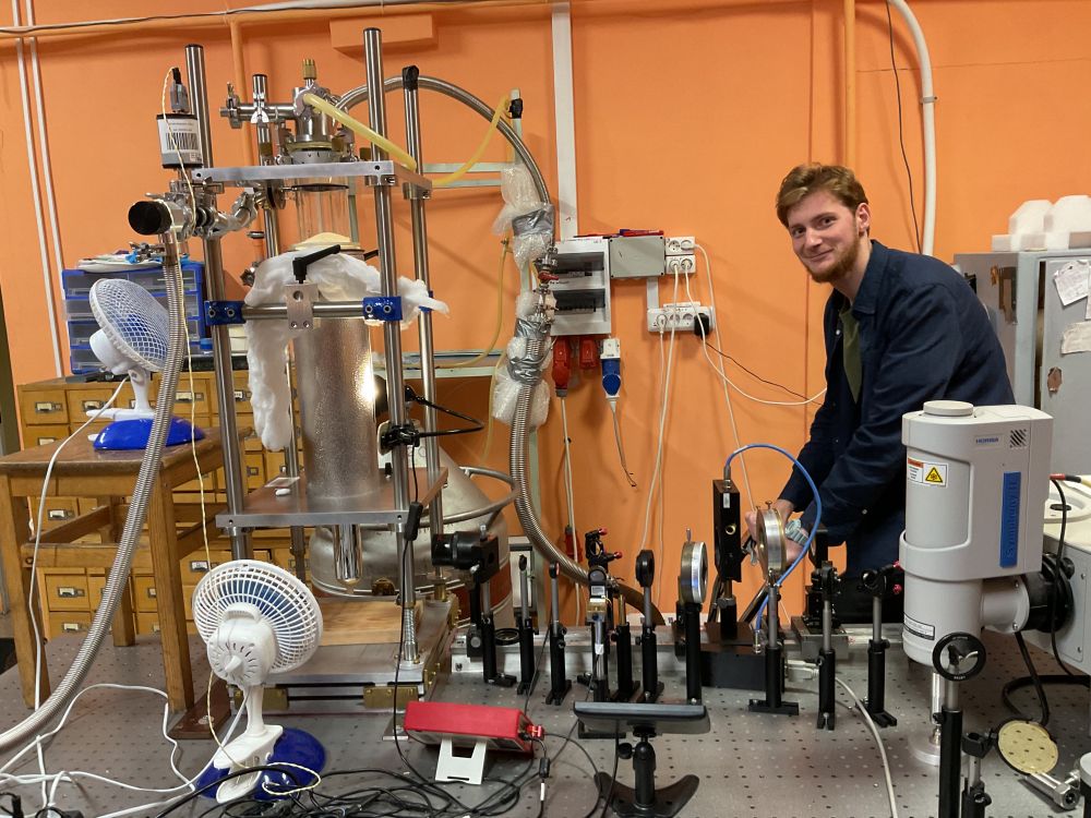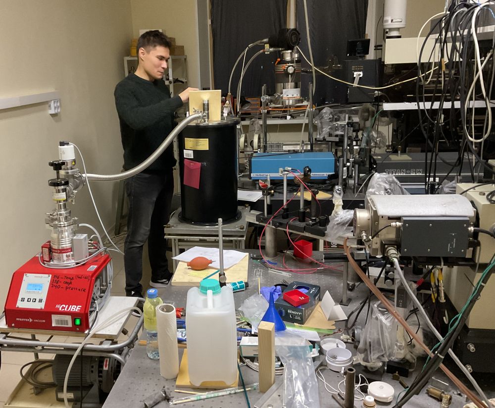Аспирант Максим Давыдов за работой по отладке магнитооптического криостата. Фото Н. Лесковой.
